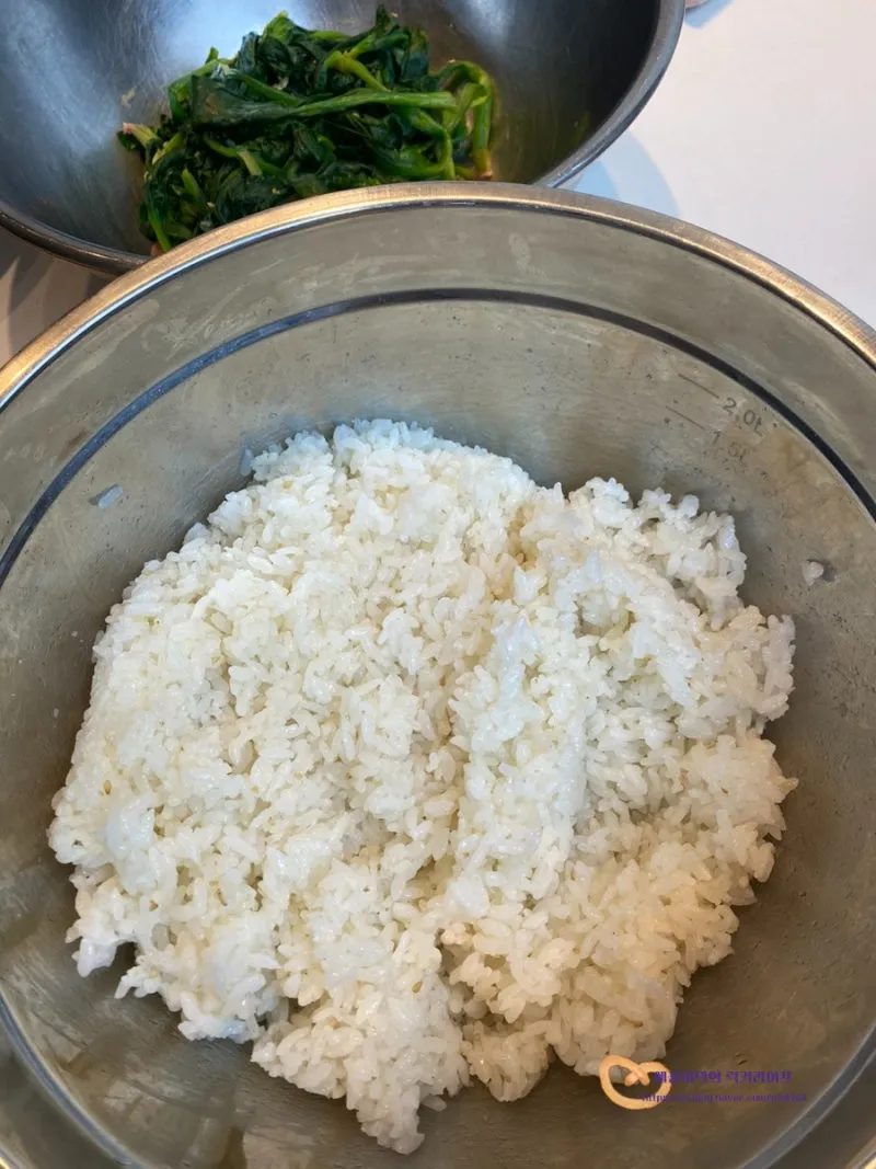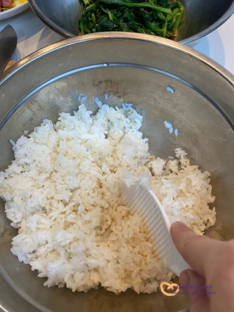 밥과 재료가 잘 밀착되도록 하기 위함인데요.