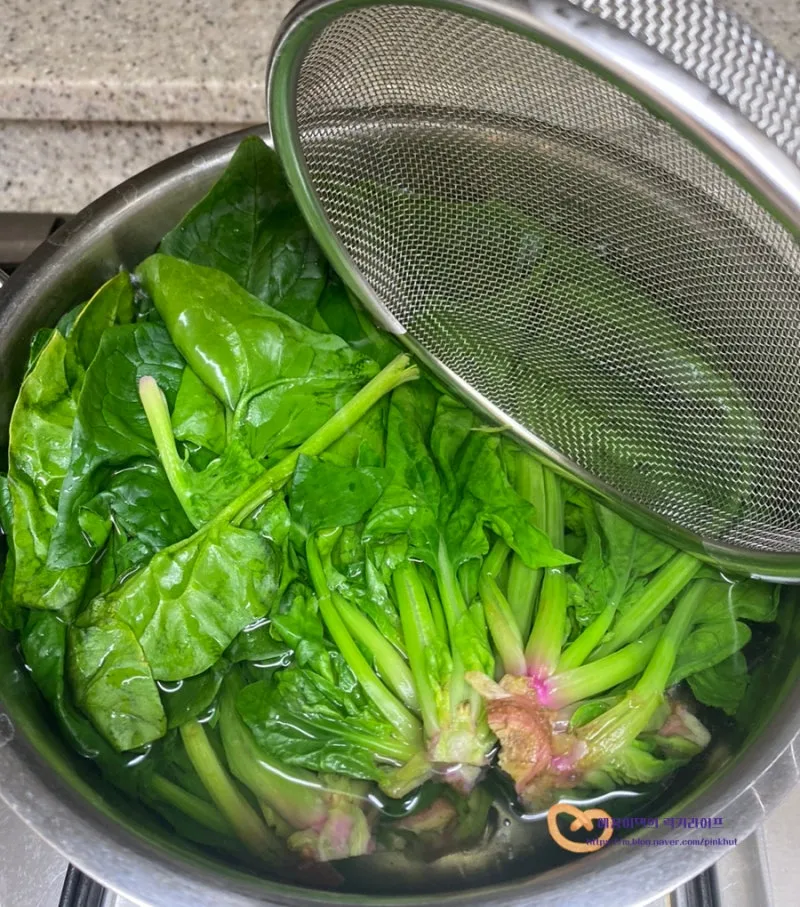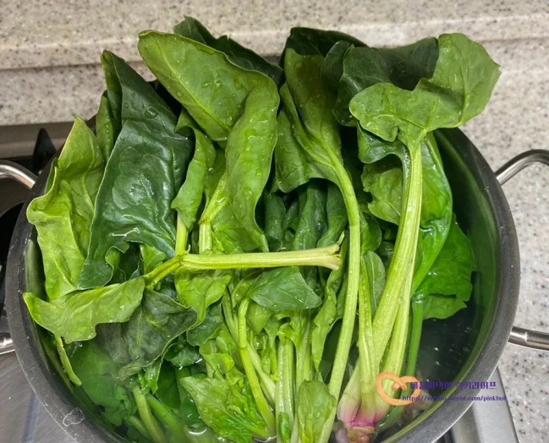 시금치는 흐르는 물에 깨끗이 헹궈주고