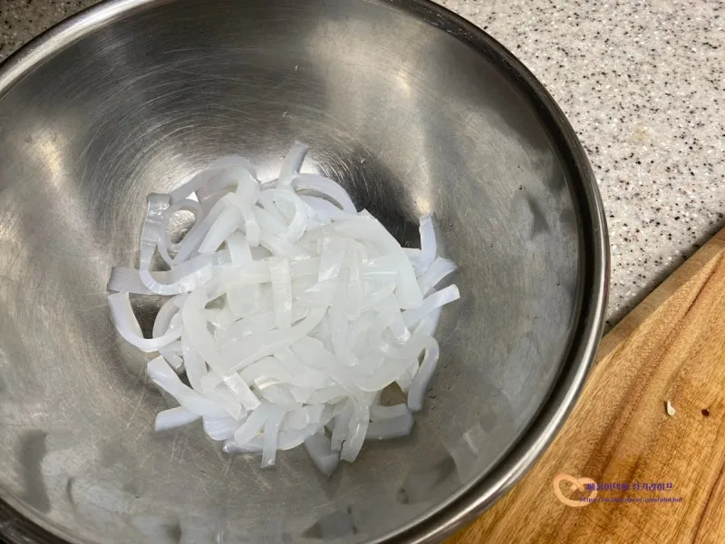 끓는 물에 속이 투명해질 때까지 데친 후에