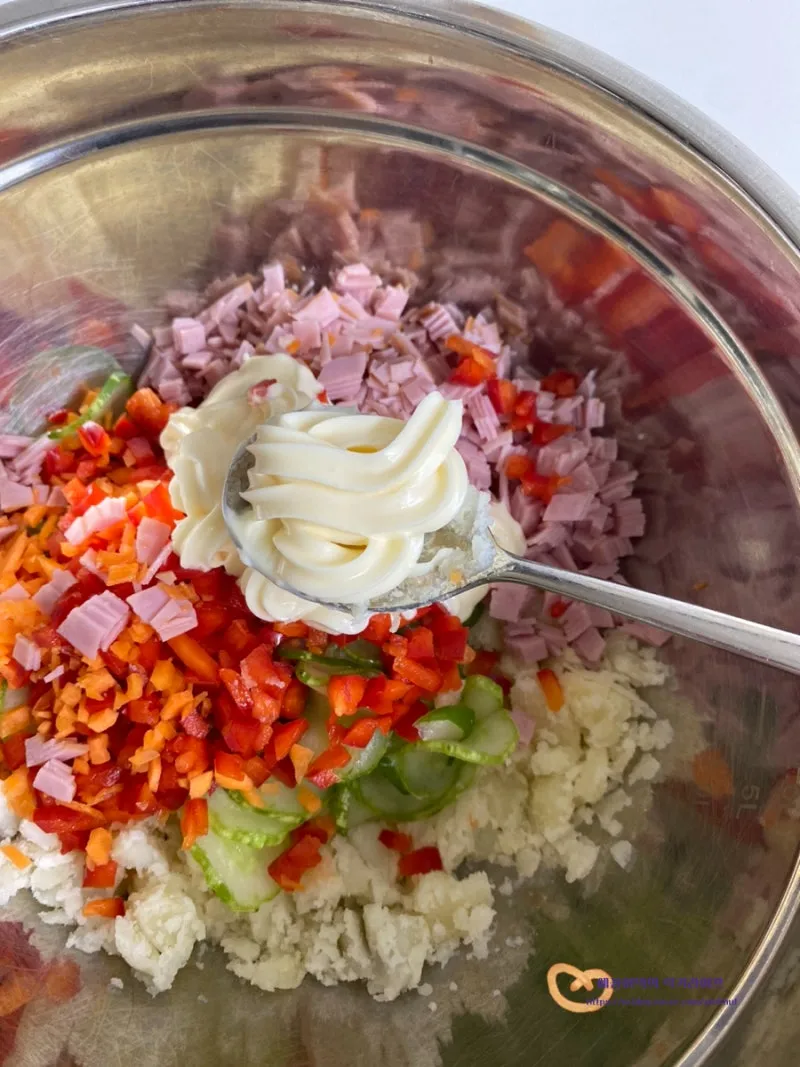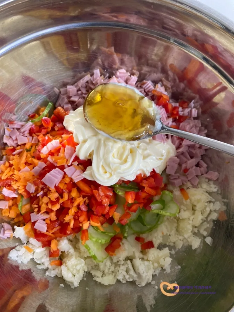 5. 재료와 마요네즈 소스 넣고 버무리기