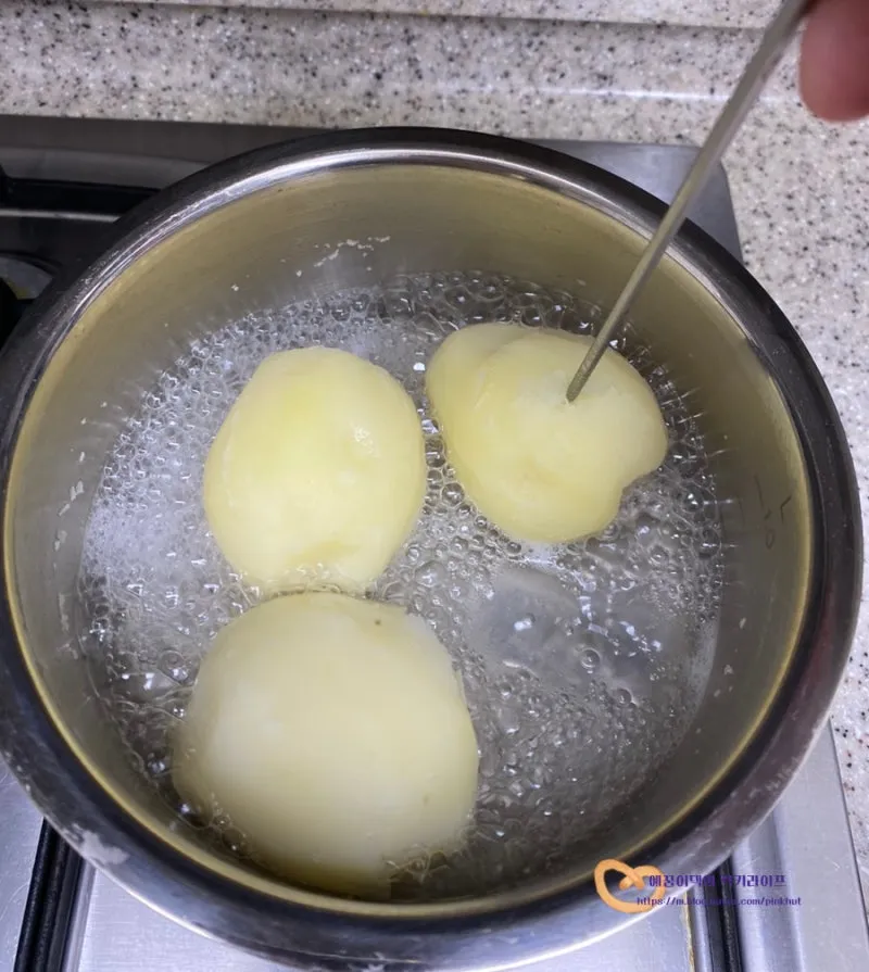 젓가락으로 찔렀을 때 감자가 부드럽게