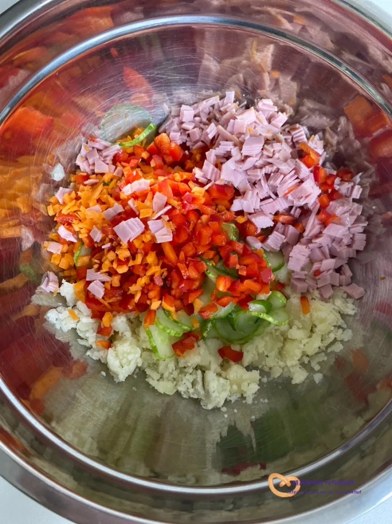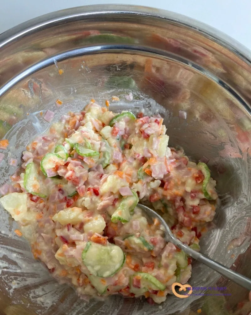으깬감자 오이햄 샐러드 완성이에요 :)