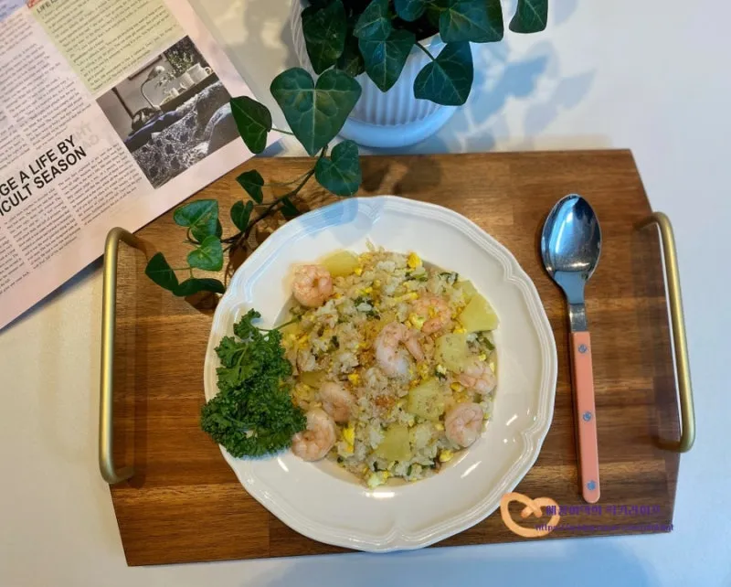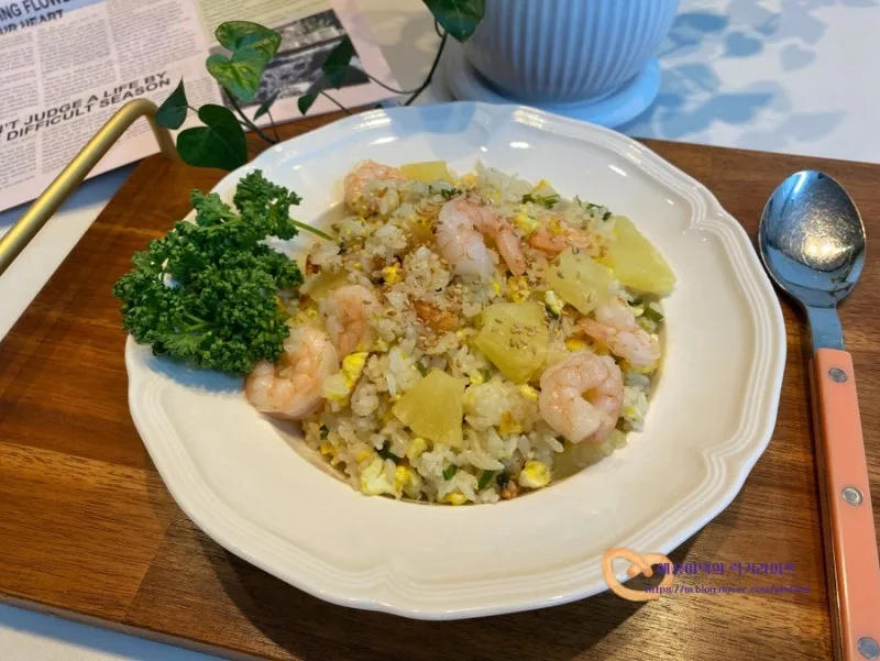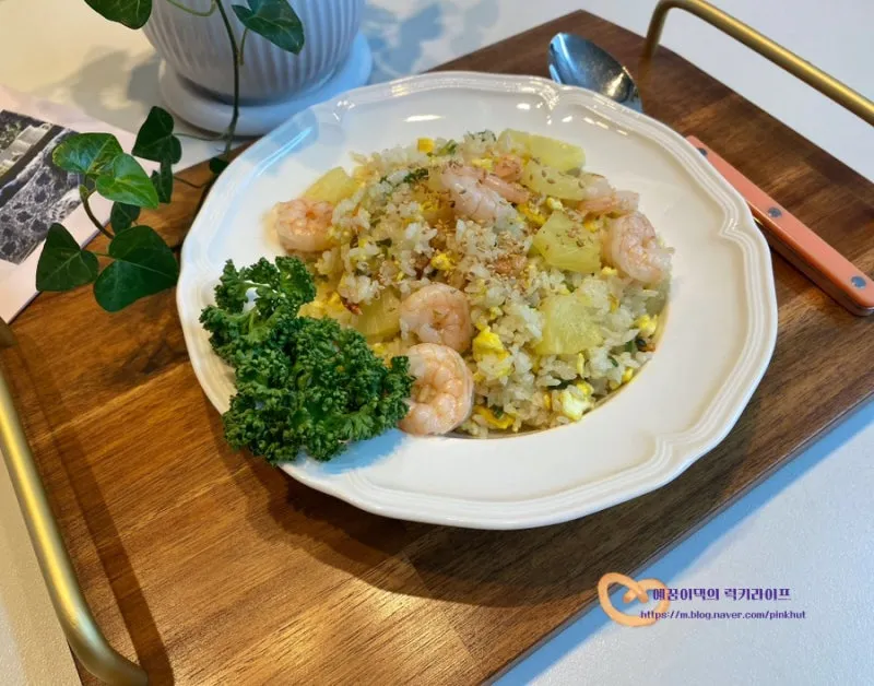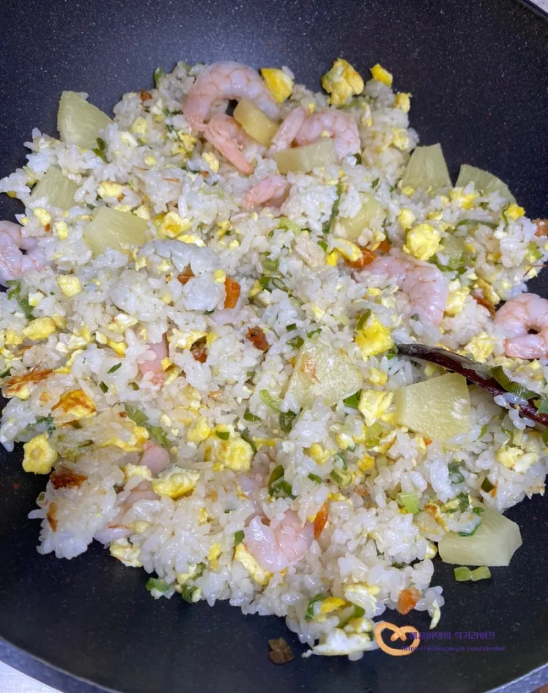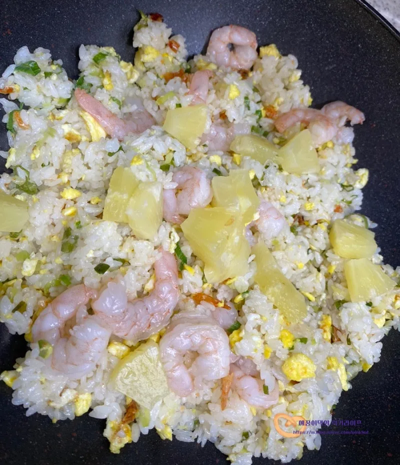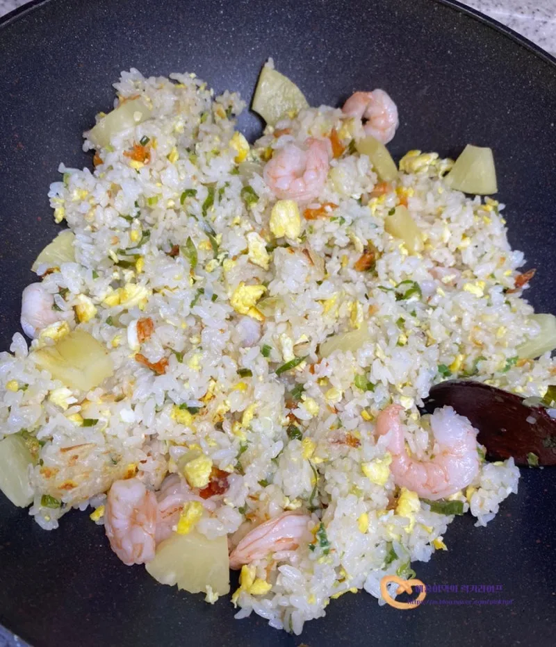 맛있게 볶아진 볶음밥은 새우와 파인애플이