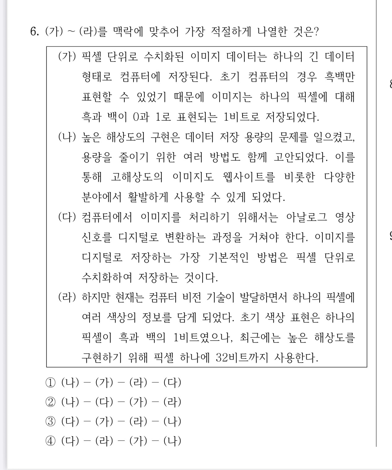 이렇게 해봐도 말이 돼고 저렇게 (나)다음에 (다)가 와도 말이 돼고 (다) 다음에 (라)가 와도 말이 되고..