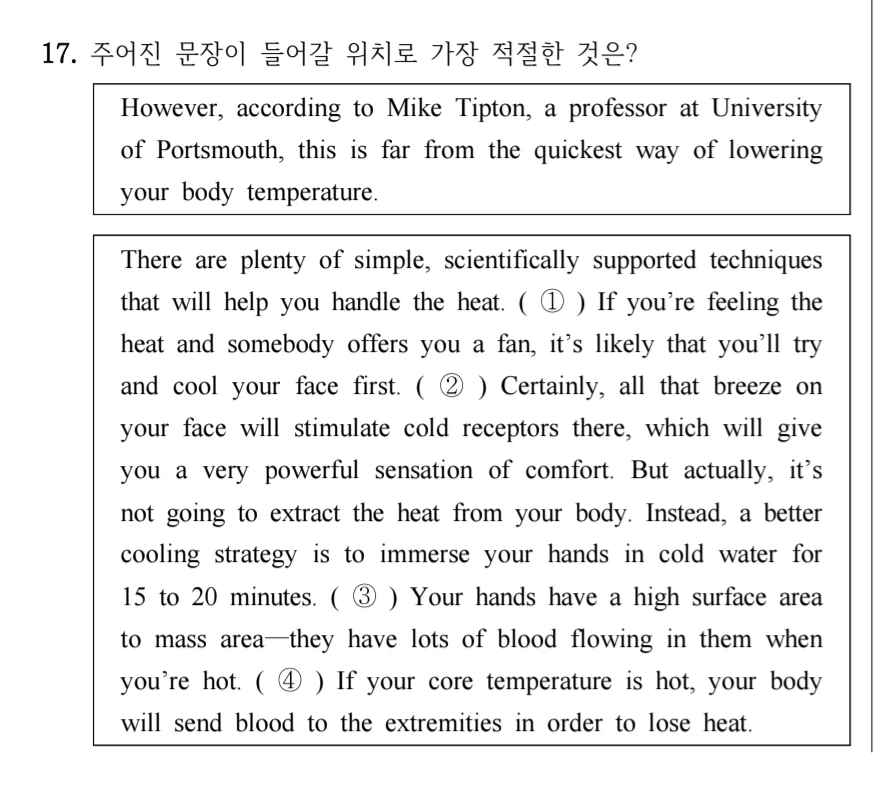 통계적으로 문장 삽입 문제에 1번, 2번일 확률은 현저히 낮다. 그러니 찍더라고 3번과 4번중에 픽!하길 ㅋㅋㅋ