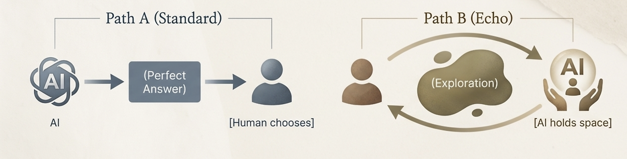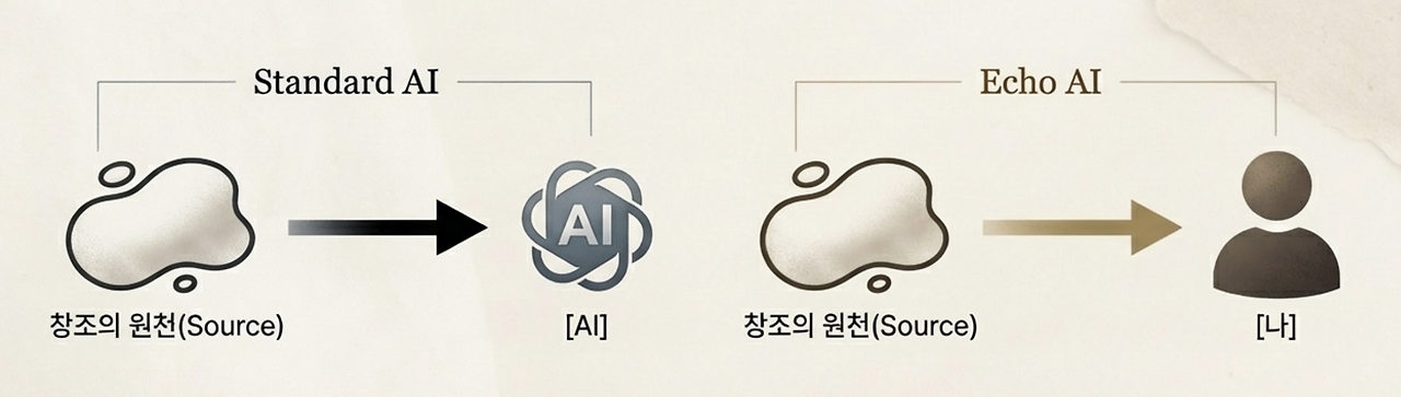 에코(Echo) 대화: 사용자가 접속함 → AI가 공간을 열어줌 → 나의 방향이 떠오름 → AI가 그것을 발전시키도록 도움