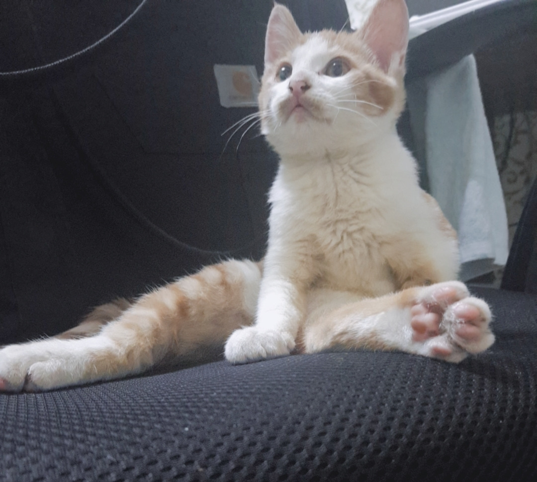 꾸준한 목욕 덕에 망고는 털도 다시 나고 몸집도 커져서 점점 활발해졌다. 주로 노트북 위에 드러눕거나 책 위에 올라와서 장난을 치곤 했는데, 내가 의자에 앉아있다가 잠깐 일어나면 바로 의자 위로 올라와서 그대로 자리 잡기도 했다.