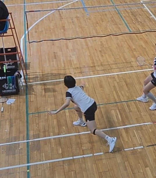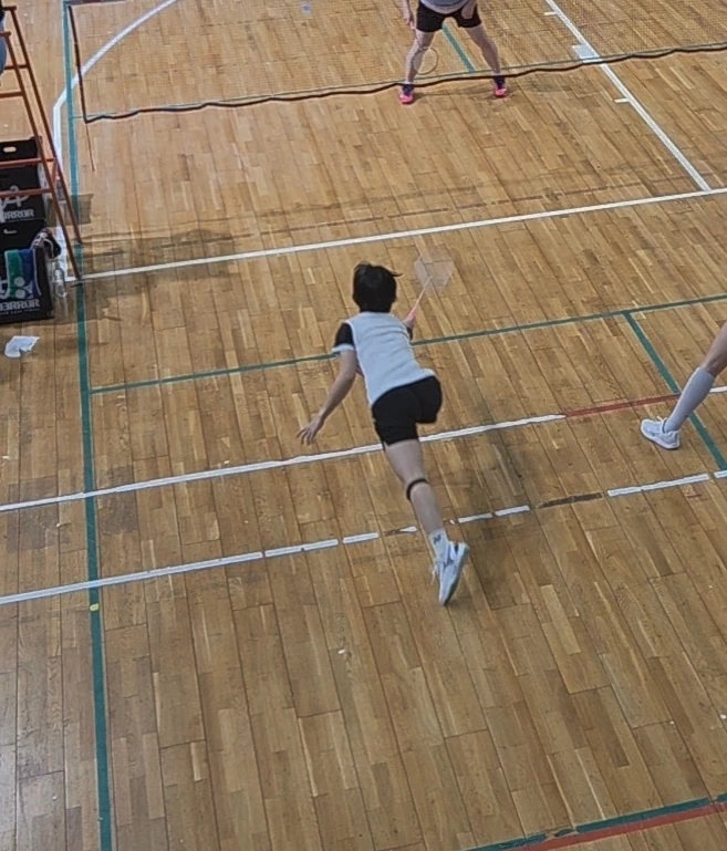 첫 번째 팀은 초록 계열로 옷을 입어서 구별이 어려웠던 반면, 두 번째 상대 팀은 고맙게도 흰색과 검은색으로 구별되었다. 나의 사전 데이터 수집 결과 검은색 옷을 입은 쪽이 대회수상 경험이 있었고, 흰색 티셔츠에 긴 바지를 입은 쪽은 우리처럼 아무 이력이 없었다. 게다가 움직임에 걸리적거리는 긴 바지라니, 정말 기대 없이 나온 왕초구나 싶었다. 게임이 시작되면 5점 즈음까지 상대방의 전술이나 실력을 살펴보는 구간을 가진다. 나는 흰색 옷 선수에게 공을 몰아줬고, 내 파트너 민주언니는 어쩐지 검은색 옷 선수에게 집중적으로 공격을 하는 것 같았다. 우리의 공격이 분산된 탓인지 상대가 만만해 보이면서도 점수를 내기가 힘들었다.