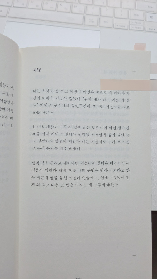 앞으로도 계속 나와 두 살 차이 나는 인생 선배로 살아갈 박준 시인의 작품을 기대한다. 그의 슬픔 속 사람앓이에 같이 아파하고 공감하던 시기의 나를 기억한다. 열 손가락이 모자라도록 꼽히던 당신들의 이름을 수없이 지어먹던 따뜻하고 뜨거운 계절이 있었다. 나는 이제 더 이상 아픈 곳이 없다.