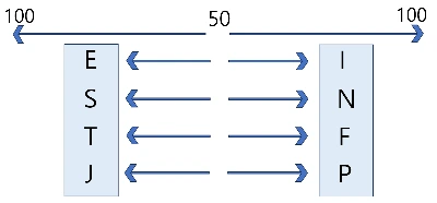 MBTI는 4가지 상반된 차원으로 이루어져 있다.