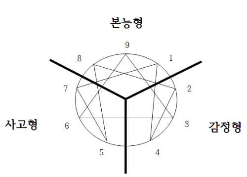 에니어그램의 3가지 힘의 중심(행동형, 감정형, 사고형)