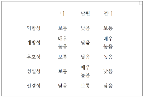 본인이 외향성, 우호성, 개방성, 성실성, 신경성(정서안정성)이 높은지 낮은지를 판단하기 쉬운 방법이 있다.