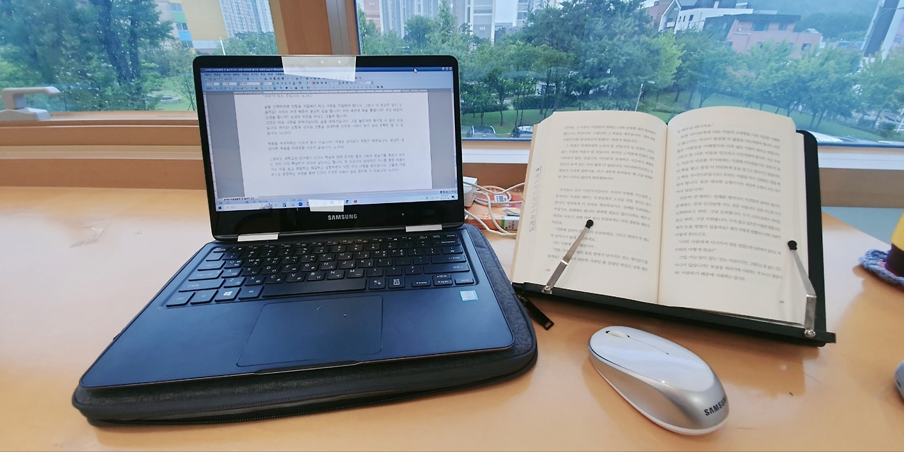 도서관으로 가는 발걸음이 유난히도 무거웠다. 도서관에 들어서자마자 지친 숨결이 올라왔다. 자리를 잡고 독서대와 노트북을 펴는 그 짧은 몇 분 동안, 서서히 정신이 예열되었다. 날이 좋으면 도서관에 사람이 많을 것 같지만, 의외로 흐린 날에 도서관이 북적인다. 시험이나 자격증 공부를 하는 사람들의 수는 큰 변동이 없다. 책을 읽는 사람, 문장을 적어 내려가는 사람, 글을 쓰는 사람 등 자신만의 세계로 접속한 사람들에게서 뿜어져 나오는 열기가 점점 번져 나에게로 닿았다. 어제 읽었던 부분을 펼쳐 첫 문장을 읽으려고 하는데, ‘무거운 몸을 이끌고 도서관에 오길 잘했다.’, 하는 생각이 스쳤다. 한바탕 두 챕터를 읽고 나서 마음이 정비되었다. 노트북을 열어 글 한편을 완성했다.