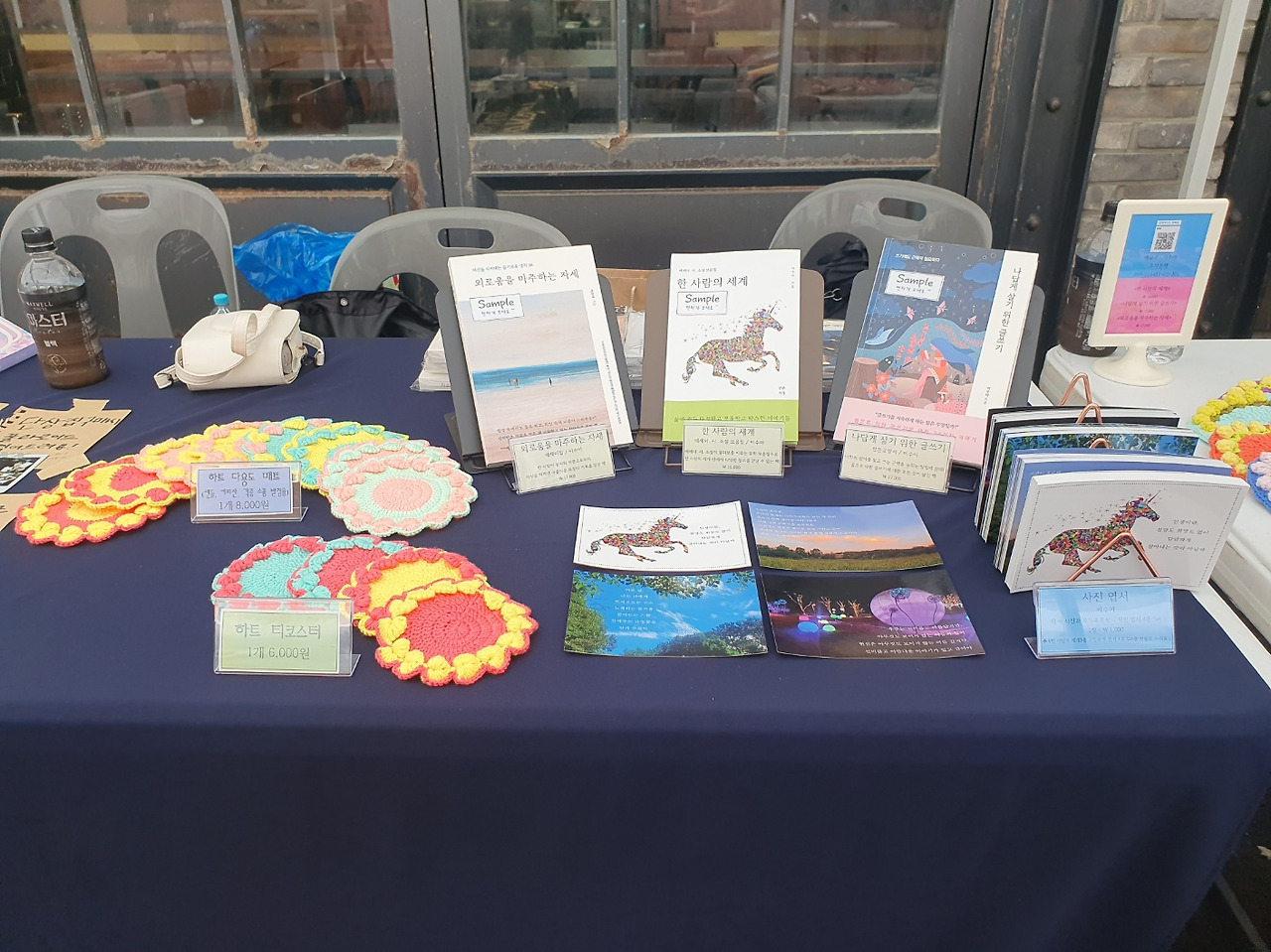 지난번 일러스트페어에서 적자를 만회할 계획을 새로이 세워야만 했다. 기부할 금액을 끌어다 써서 그런지 마음이 바빴다. 어떻게 해야 할지 몰라 막막했는데, 우연한 기회가 찾아왔다. 인생이란, 참 묘하다. 알 것 같다가도 모르겠다. 막다른 길목을 서성일 때면 느닷없이 불쑥 새로운 길이 나타나곤 한다. 그 새로운 길은 이태원 H플리마켓이었다.