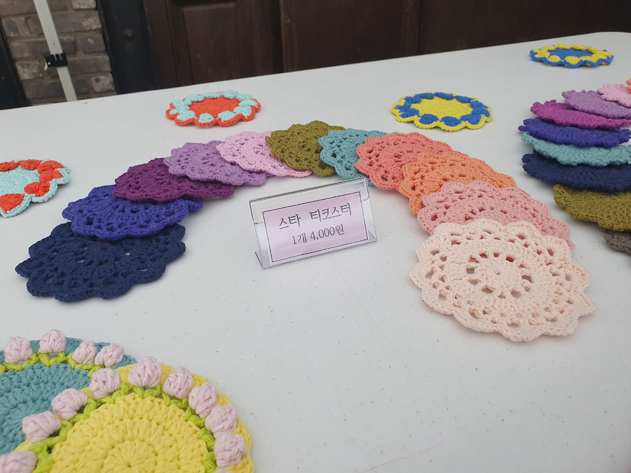 작은 출판사를 운영하는 어느 모임에서 누군가 플리마켓에 함께 나갈 사람을 구한다고 했다. 내가 제일 먼저 손을 들었다. 1초도 고민하지 않았다. 코바늘로 손뜨개를 해 온 지 12년째이다. 코바늘로 뜬 소품으로 플리마켓에 나간 적이 있었다. 플리마켓에 함께 나갈 사람을 구한다고 글을 올린 L은 책을 판매한다고 했다. 나는 플리마켓의 성격에 맞게 책과 코바늘 소품을 판매할 계획이다. 틈틈이 떠 놓은 컵 받침대가 50개가 넘으니 이걸 가져가면 된다.