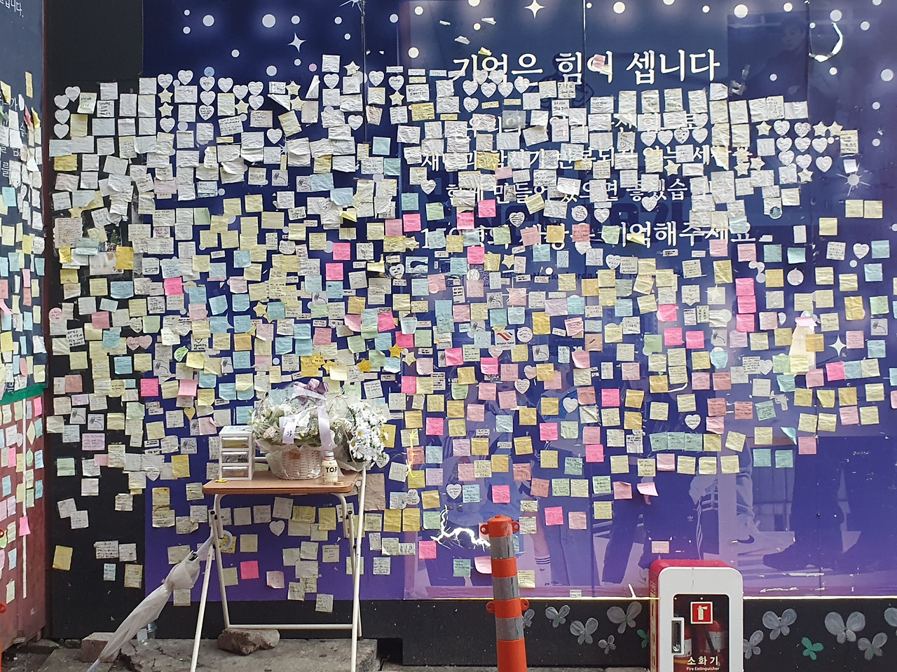 종일 비 소식이 있었지만, 다행히 비는 많이 내리지 않았다. 주최 측에서 알려준 대로 지도를 보며 길을 찾아갔다. 이태원역 1번 출구에서 몇 분이나 걸었을까. 3분이 채 안 되었던 것 같다. 난생처음 와 본 길목이었다. 그런데 그 길이 낯설면서도 익숙했다. 뉴스와 유튜브를 통해 여러 번 보아서였다.
