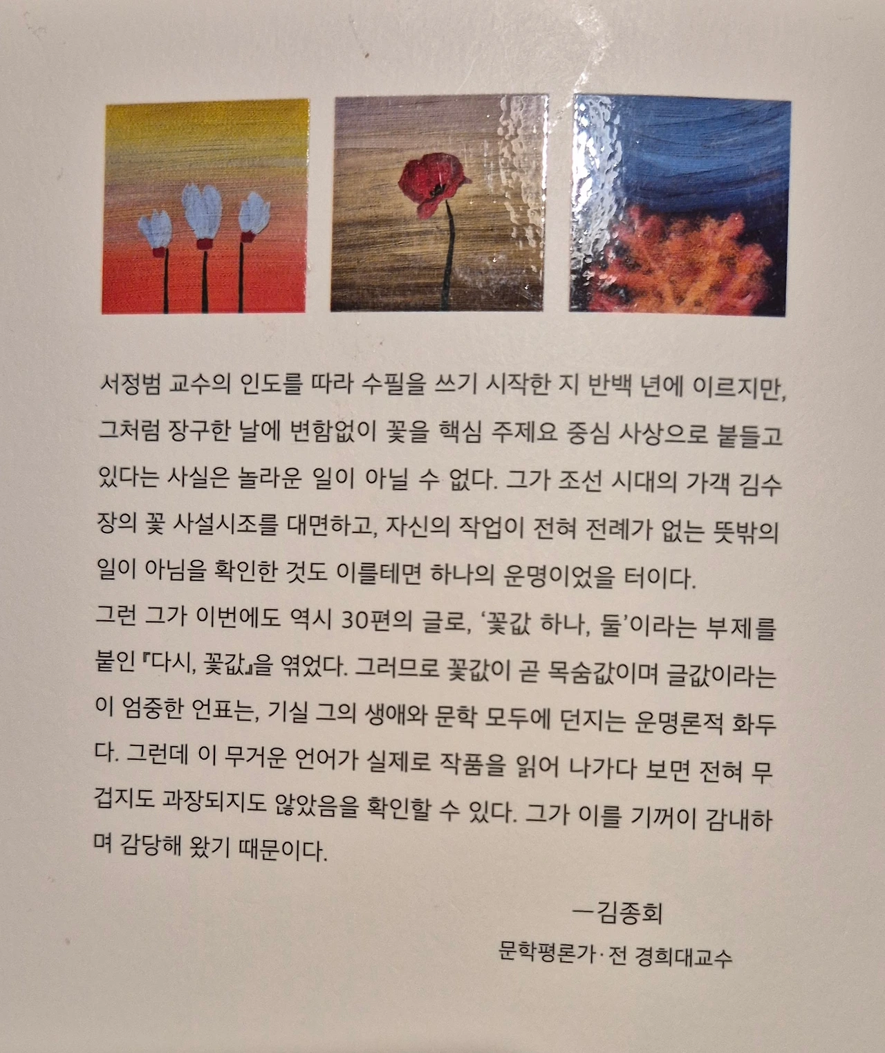 이정원 수필집 <다시, 꽃값>의 서문이다.