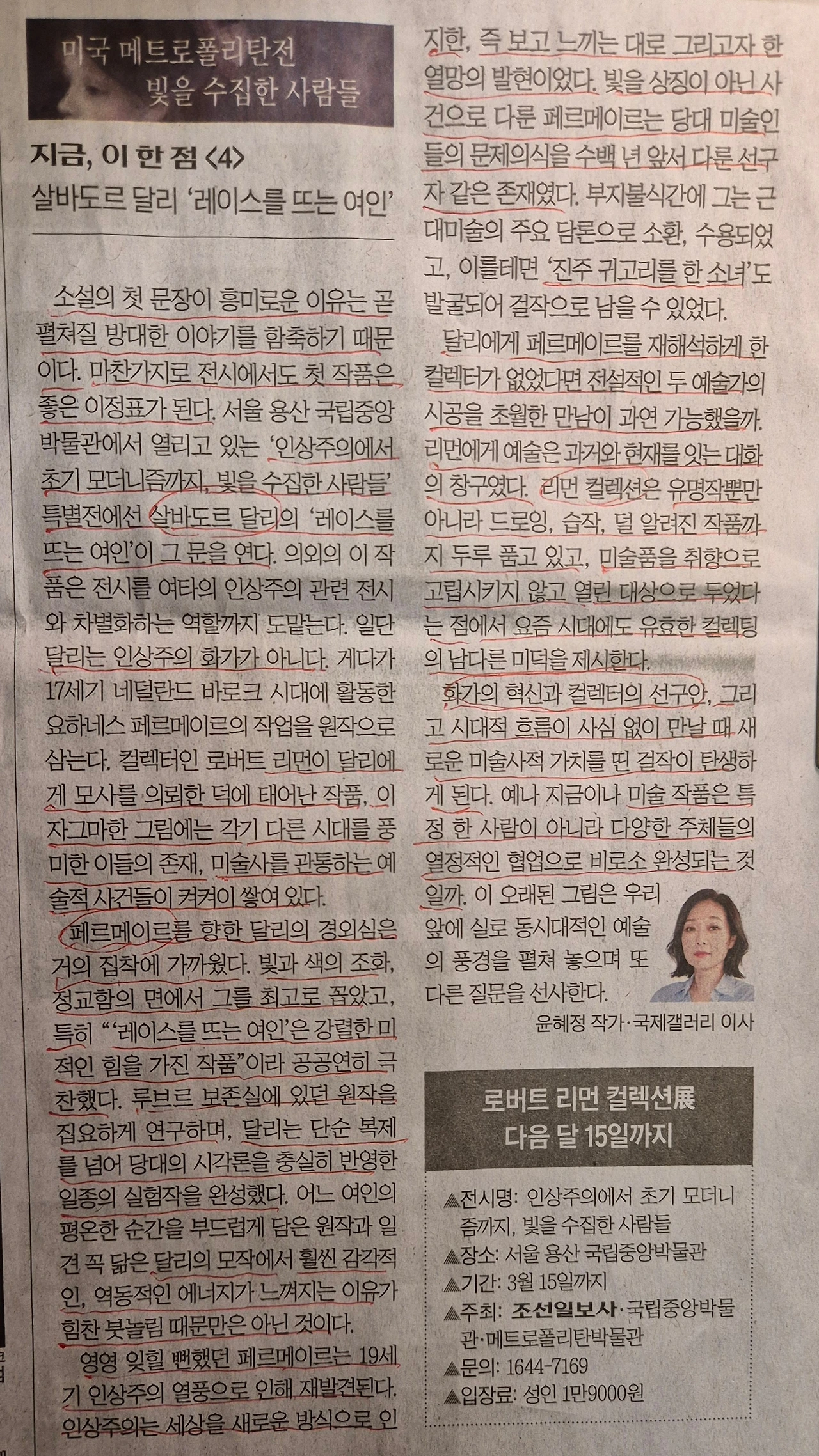 미국 메트로폴리탄전 '빛을 수집한 사람들' 특별전에선 '살바도르 달리'의 <레이스를 뜨는 여인>이 그렇다.