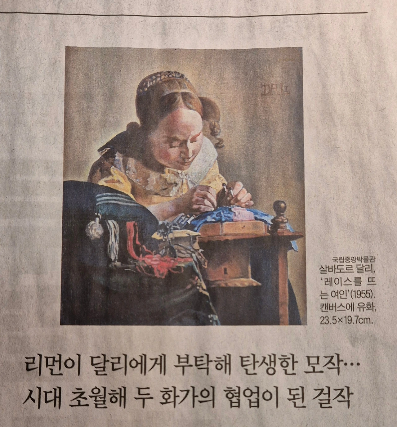 그런데 오늘 조간신문에 이 기사가 실렸다. 먼저 기사부터 읽었다. 그간의 의문들이 하나씩 풀려 나갔다. 이 그림의 원작을 그린 페르메이르는 '진주 귀걸이를 한 소녀'를 그렸으며 달리가 모사한 '레이스를 뜨는 여인' 때문에 '진주 목걸이를 한 소녀'가 알려지게 되었다니 놀랍다.