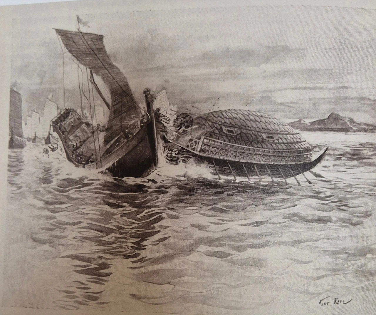싸움터를 빠져나가 먼바다로 달아나는 적선 및 척이 선창 너머로 보였다. 밑물이 썰물로 바뀌는 와류 속에서 적병들의 시체가 소용돌이쳤다. 부서진 적선의 파편들이 뱃전에 부딪혔다. 나는 심한 졸음을 느꼈다.