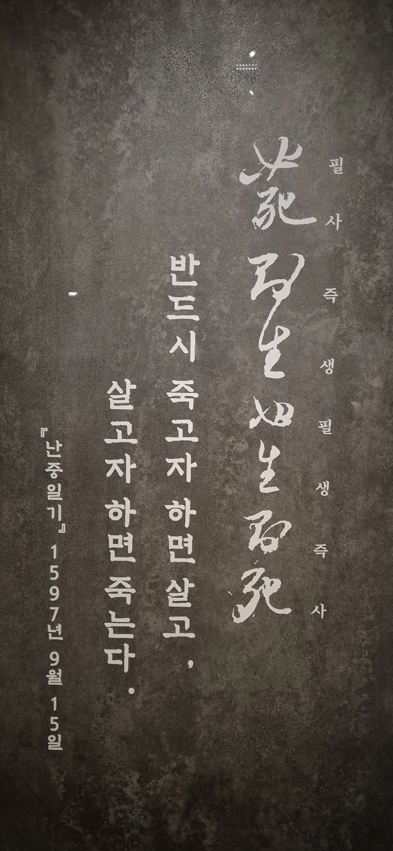 난중일기 친필 본이다. 장군의 친필을 보니 감회가 새롭다.