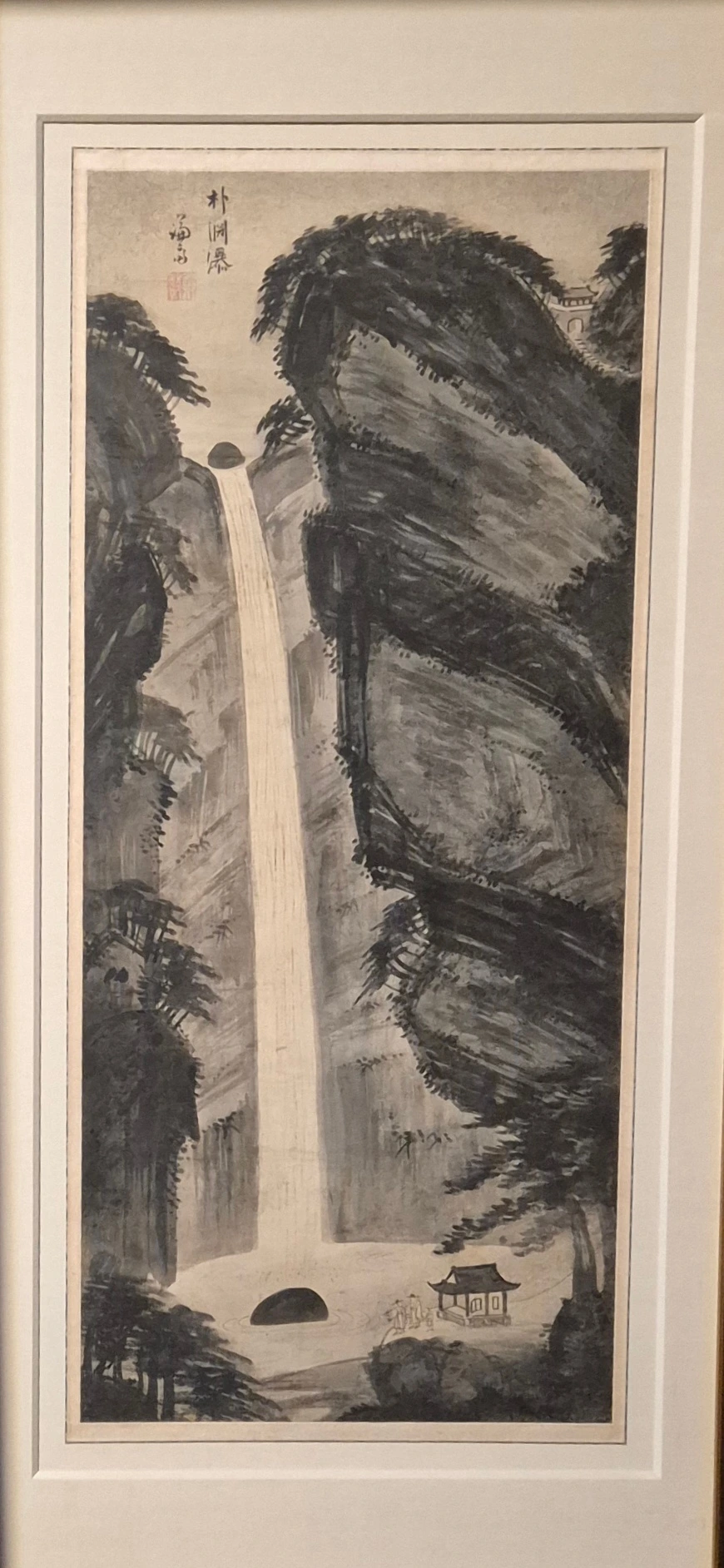 개성의 박연폭포를 그렸다. 조선시대 문인들은 박연폭포를 중국 여산 폭포에 비견할 만큼 뛰어난 명승으로 여겼다. 정선은 폭포의 장엄한 인상을 극대화하기 위해 대상을 과장해 표현하고, 폭포수는 실제보다 길게 확대하여 그렸다. 양쪽 벼랑은 짙은 먹으로 겹겹이 쌓아 흰 물줄기가 더욱 도드라지도록 했다. 화면 아래에는 법사정 곁에서 폭포를 감상하는 선비를 배치해 현장감을 더했다.