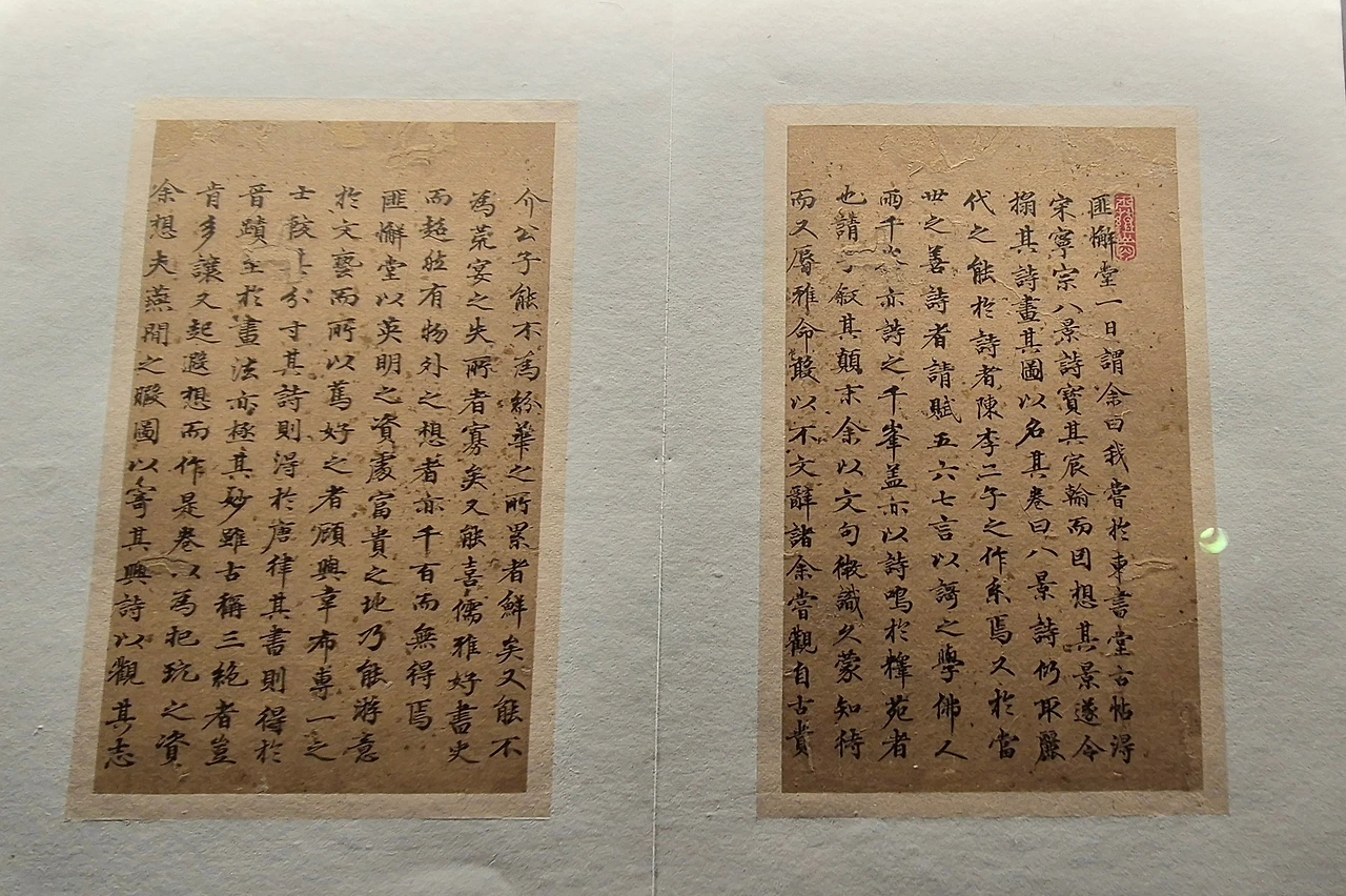 "내가 언젠가 <동서 단고 첩>에서 송나라 영장의 팔경시를 보고 그 글씨를 보물처럼 여겼다, 그리고 그 경치에 대해서 생각하고 마침내 그 시를 모사하라는 명을 내리고 그 경치를 그리게 하여 그 두루마리를