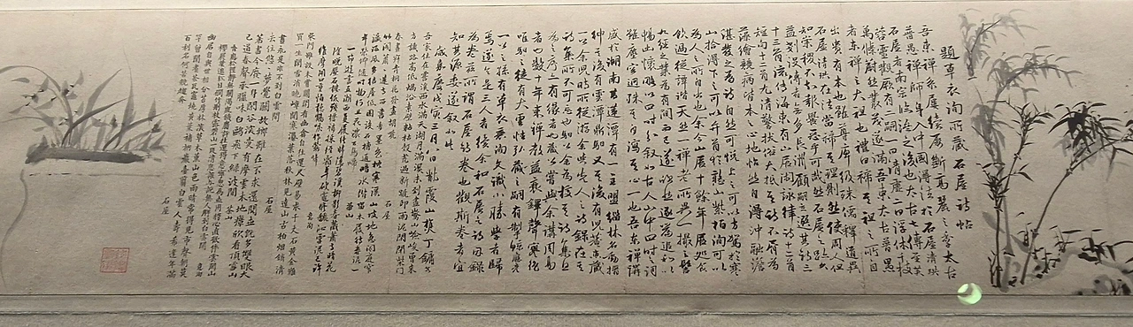 옛날에는 뱃전을 두드리며 읊조렸던 시를, 이제 그는 차가운 창 아래에서 코를 막고 낮게 되뇐다. 강과 호수는 온 땅에 가득하고, 물은 하늘에 떠 있는 듯 아득한데, 그 풍경은 더 이상 눈앞의 것이 아니라 마음속의 풍경이 된다. 그리고 마침내, 모래사장에 번진 달빛이 배 안을 환히 밝히듯, 한 줄의 시와 한 획의 글씨가 그의 내면을 비춘다.