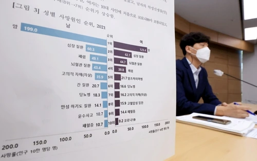 지난해 국내 사망 원인 1위는 암(26%)이었습니다. 심장 질환(9.9%)과 폐렴(7.2%) 뇌혈관 질환(7.1%) 자살(4.2%) 당뇨병(2.8%) 알츠하이머병(2.5%)이 뒤를 이었는데요. 스스로 목숨을 끊은 사람도 1만3352명에 달했습니다. 2020년보다 1.2%(157명) 증가한 수치. 인구 10만 명당 자살자(자살률)는 26명으로 집계. 국가별 연령 구조 차이를 제거한 연령표준화 자살률은 10만 명당 23.6명으로 OECD 회원국 중 1위. OECD 평균인 11.1명의 두 배 수준입니다. 자살률이 20명을 넘는 국가는 우리나라와 리투아니아(20.3명)뿐.