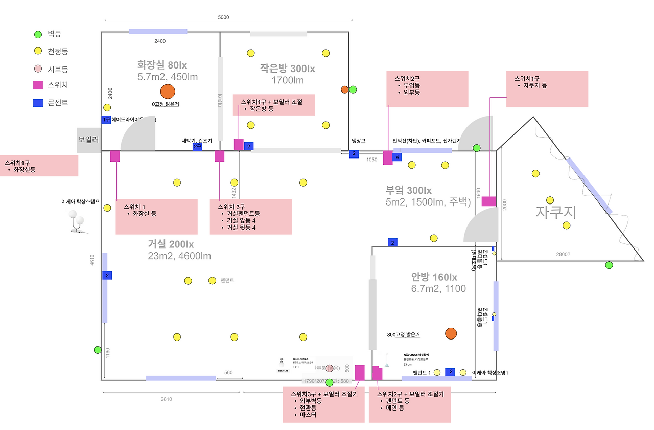 따라서 반드시, 배선 계획은 공간별로 크게 프린트해서 현장에서 수정이 있으면 바로바로 마킹하고, 작업자분들과 공유하는 것을 추천한다.