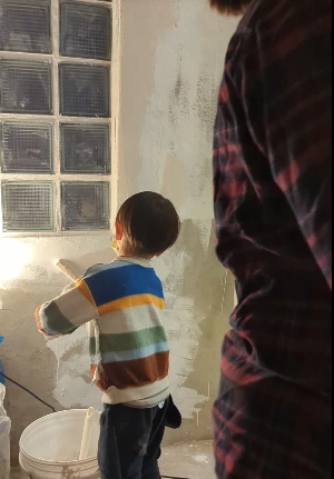 물부엌 자리에 자쿠지를 만드는 계획이었다. 역시나 애초엔 전부 셀프로 할 생각이었고, 역시나 결국엔 조적과 미장은 미장팀께 부탁드렸다. 자쿠지 자리의 벽 페인팅은 나와 아들이 함께 했다. 칭찬의 힘인지, 아들은 페인팅 작업을 매우 재미있어 했고, 후에 제주 집 만든 이야기를 하면 본인이 페인트 칠한 얘기를 꼭 한다. 우리집 자쿠지 쓰는 분들, 이게 우리집 4살짜리가 콧물 흘리며 칠한 벽이라우.