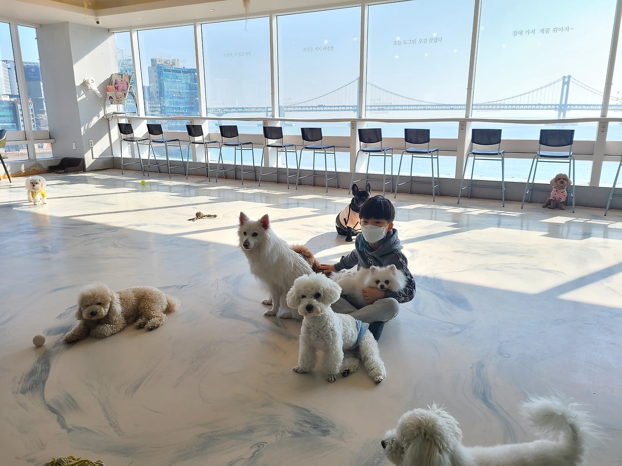 우리는 애견카페 2곳을 방문하였다. 한 곳은 중소형견, 다른 한 곳은 대형견 카페였다. 대형견을 키울 생각은 없지만, 그래도 아이들에게 이러이러한 강아지도 있다는 것을 보여주고 싶은 마음에서다.