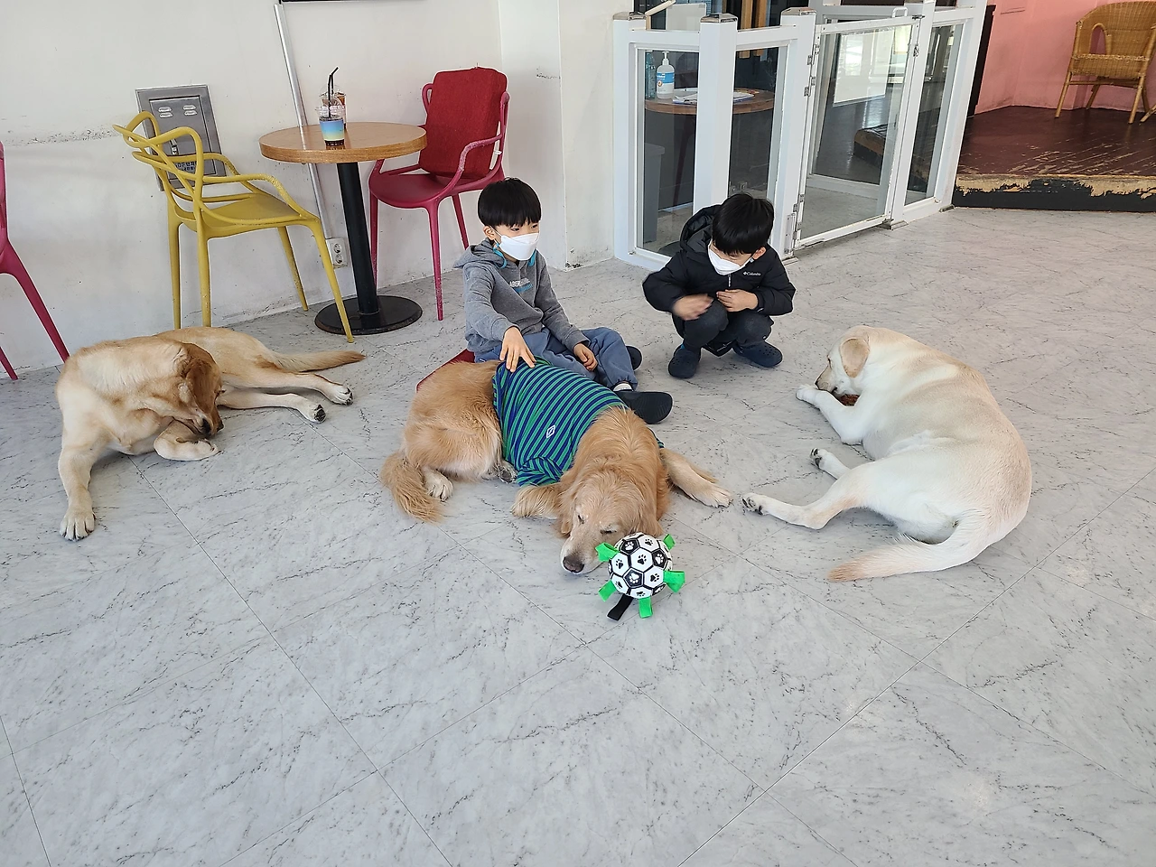 그다음 주, 대형견 카페로 갔더니 말을 잘 듣는 골든 레트리버를 만나자 큰 아이의 생각이 바뀌었다!