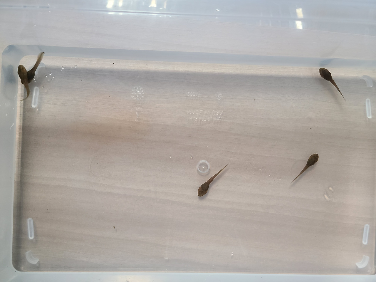 얘네들 금붕어 키우는 거랑 똑같대. 수돗물 받아서 금붕어 먹이 주면서 키우면 된단다. 개구리가 될 때까지 12주 정도 걸린대."