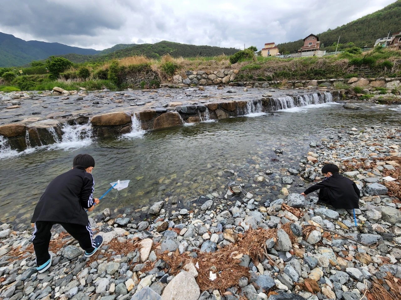 엄마, 우리 올챙이 잡았어요!"