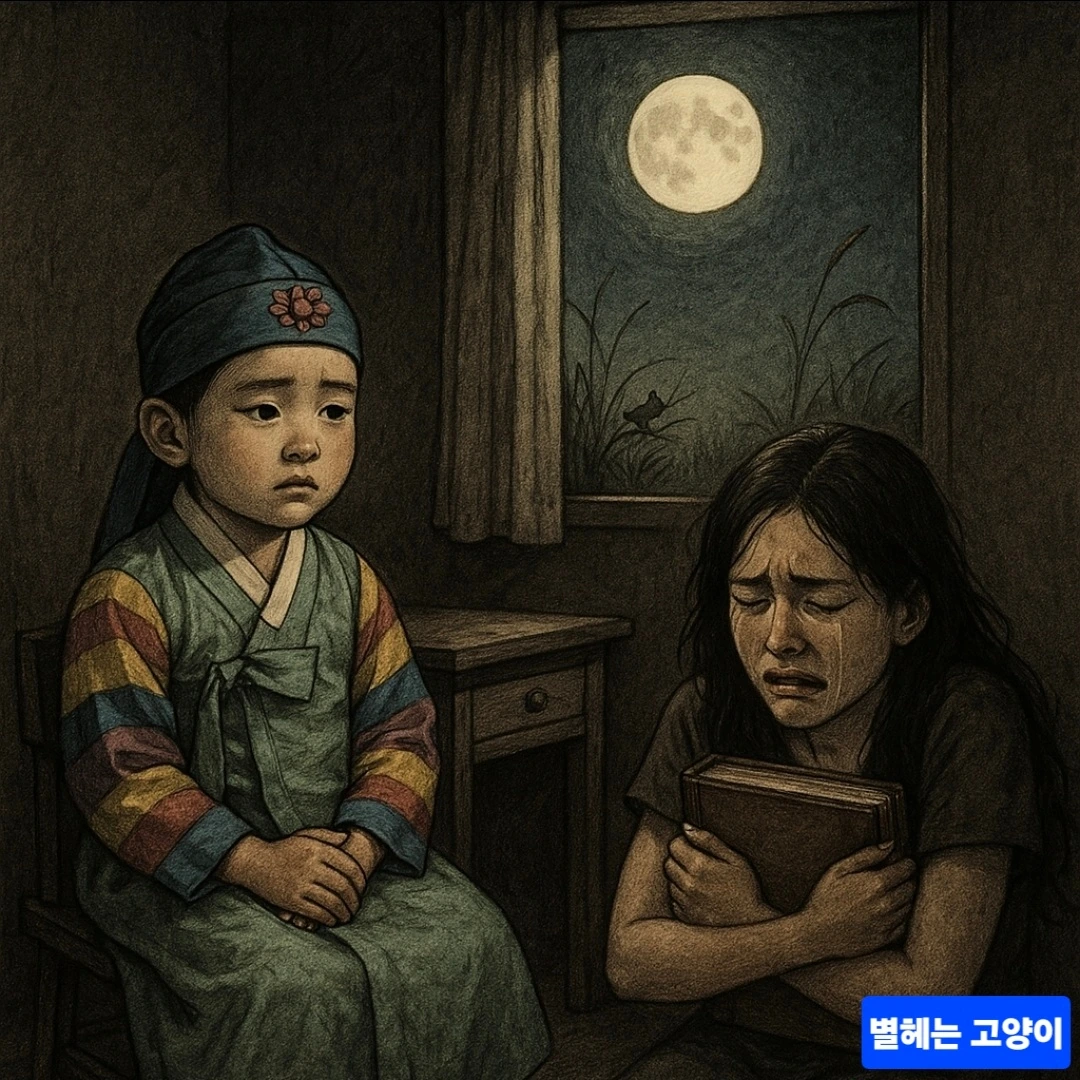 색동소매 옥색두루마기를 입은 아기동자가 있었고 창문으로 힘을 잃은 달빛이 가늘게 새어 들어왔다.