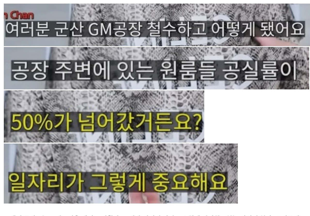 그래서 루카스는 군산공장을 예시로 말한다. 그러나 여기서 가장 중요하게 간과하고있는 사실이 있다. 공실률이 50프로가 넘는다는것은 이미 예전부터 부동산, 지대의 공급과잉에 노출되었기 때문이다. 지대 수요가 높은만큼 가격은 계속 상승하고 건물을 짓고 투자하려는 민간이나 기업들이 속속히 등장한다. 그러면 기존에 그 지역을 투기했던 기업들에게 더 큰 기업들이 그걸 인수함으로써 가격은 대폭 상승한다. 일자리가 감소해서가 아니라 지대 효용에 따른 기업들의 대량투기가 한국경제에서는 더 큰 문제점으로 대두되어왔기때문에 단순히 일자리 부족에 직결되는 현상을 일원적으로 나열하는건 잘못된 해석이다. 실제로 군산 공장은 생산력 감소,매몰비용 증가로 인해서 철수해야만했고 기존의 투기 집약적 공급과잉은 공실률 덕분에 주거가격 하락으로 인해 집을 싸게 구매하려는 소비자들이 생겨났다. 이러한건 일자리에 국한되는것도, 기업이 망해서 발생하는 문제점에도 연관이 없다. 지극히 어떤 지대에 공장이나 법원, 기업 건물같은 특정한 기능을 하려고 점유하는만큼 거기에 맞게 국지적일뿐이다.