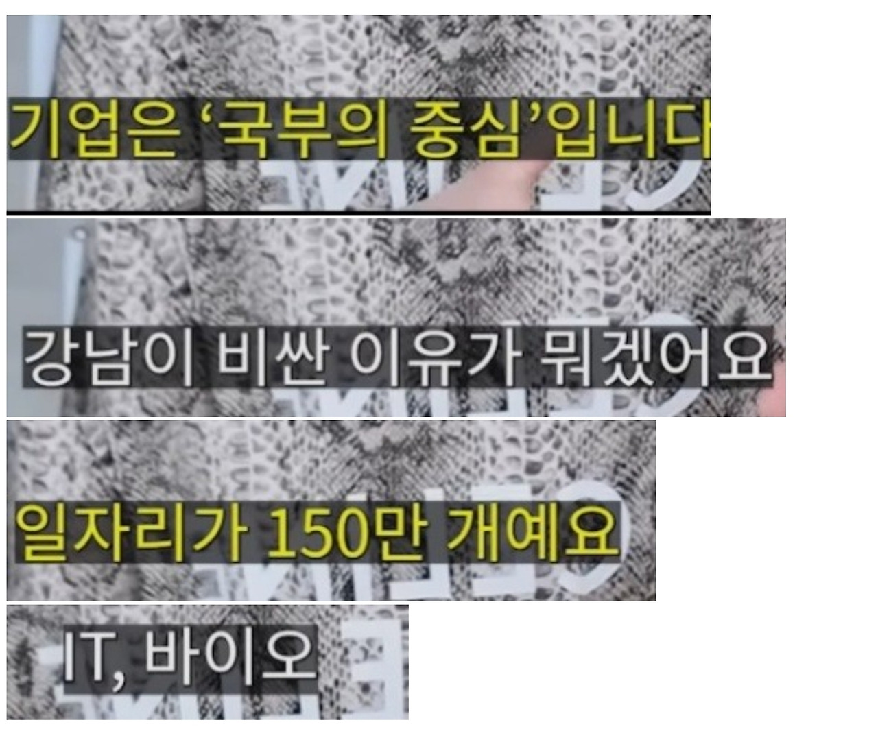 그리고 마지막으로 강남을 예시로 들면서 일자리의 중요성을 재차 부각한다. 자꾸 일자리라는 역할의 필요성을 남발하며 대기업의 역할적 지위를 강조하려들지만 사실 이건 대량생산을 위주로 경제가 구현해놓은 제조업에 기반한 전근대적인 이론이다. 물론 이러한 고전적 경제이론은 지금도 경기 실황을 예측하거나 정책안을 도입하는데에 여전히 필요한 기능을 발휘한다. 왜냐면 역설적이게도 제조업은 대기업에 의한 일자리 격차를 해소하기위해 중소기업의 현안을 비춰주는 이론이다. 그러나 IT 바이오 와 같은 일자리는 재화를 창출하는 생산 집약적 일자리가 아니라 인력이나 기술을 재가동 할수있는 용역에 가깝다. 더군다나 첨단기술 일자리는 기존의 경제 패러다임으로 해석이 불가능한 변곡의 일환이다. 그러한 일자리는 오직 수출중심의 무역과 외환 유입을 중심으로하는 자본수지에 목적이 있을뿐, 민생 경제에는 이미 탈구된것이나 마찬가지다. 과거에 긴밀하게 유착되어 성장을 도모했던 70년대에 국가가 직접 나서서 민간과 기업 간의 정책적 조율을 하던 때와는달리, 오늘날 첨단일자리와 관련된 분야는 철저하게 분리되어 국가와 대기업의 이원적 구조의 반목이다. 국가가 커지면 중산층 위주의 소득세를 불리며, 그렇다고 자유시장을 활성화하여 세금을 감축시키기를 요구해도 기업 규모가 비대해짐으로써 물가상승과 대기업을 제외한 일자리 감소와 간헐적으로 잠재된 인플레이션을 고스란히 겪어야한다. 실제로도 2000년대 초반 한국이 조선업이 성장했고 한계비용 해결을 위해 중국에 공장을 유치시킴으로써 부품 수출 및 제조업을 발달시켰지만 중국의 물가가 상승함과 동시에 한국의 첨단 기업은 덩달아서 중국의 비싸진 노동과 품목덕분에 무역 흑자를 달성하여 호황기를 누렸다. 그 시기 한국은 IMF 이후 삼성을 비롯한 대기업이 커짐으로써 또 다시 찾아온 일자리 위기를 겪었고 이번에는 IMF 와는 결이 다르게 고임금이었던 노동자들이 감소하여 보통 임금 저임금 근로자가 속출했다. 이때 소비는 위축되었고 부동산 가격은 하락 추세였으나 2006년부터 정부정책 덕분에 집값은 다시 상승했다. 다시돌아와서, 루카스는 기업이 국부의 중심이라고 말한다. 일단 "국부" 라고 했으니 맞는 말이다. 그러나 국가 자본에 어떻게 할당되는지를 주의깊게 볼 필요가있다. 루카스는 시카고학파를 지지한다. 하지만 시카고 학파가 그렇게 강조하는 낙수효과는 실제로 경제 성장과정에 필요로하는 중간단계의 경기 순환이나 물적 자본의 유동성일뿐이다. 성장이 둔화되었으며 이미 고착화된 불균등한 경제구조에서는 낙수효과는 존재할수가없다. 그래서 레이거노믹스의 말기에 미국 경제는 아시아의 제조업에서 경쟁력을 잃었고 국가의 성장이 둔화되는 도중에 민생은 파탄이 났고 범죄율은 증가했다. 더 이상 기업의 성장은 개인에게 도움이 없었다.그래서 결국 레이거노믹스 시기에 경제학자들은 "낙수효과가 없다"는 결론이 나왔고 실제로 그런 현상을 한국은 21세기 초부터 겪었다. 이렇게 경제에서 절대적인 원론이란 존재하지않는다. 각기다른 이해관계속에 주장하고픈 계급투쟁의 전유물이다. "자본주의가 인간의 자연스러움이다. "사회주의 경제가 모두에게 좋다" 혹은 "그나마 이러한 체계가 최적이고 다행이다" 등 과 같은 미사여구따위는 보편적인 선에서 붙는것이란 불가능하다. 오직 누가 어떤이유로 물적 개념 하에서 불편하거나 고통받는냐는 타인에게 정당화할수없다. 물론 나 또한 노동없이 모든 사람이 국가로부터 정해진 영역에서 공공재를 누렸으면 좋겠다는 터무늬없는 망상도 해봤다. 그러나 누군가에게는 경쟁을 통해 승리해서 보상을 받는것이 진정한 삶의 행복이라고 생각하는것또한 나는 충분히 파악했으며 그들을 존중한다.