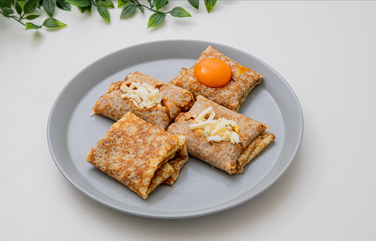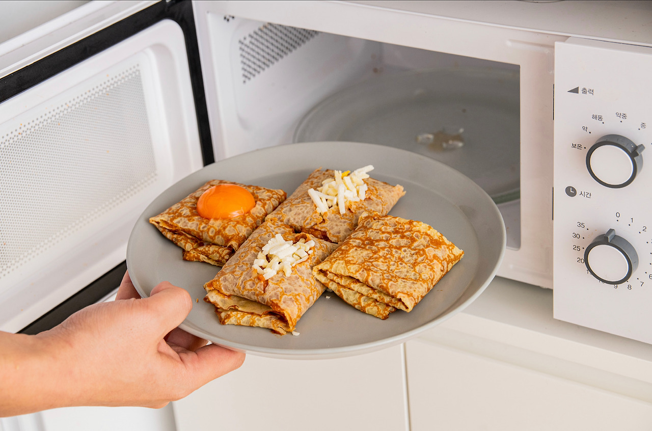 3. 완성된 크레페는 전자레인지에 50초간 돌린다. 에어프라이어나 오븐 사용 시 180도에서 1분 30초간 익힌다.