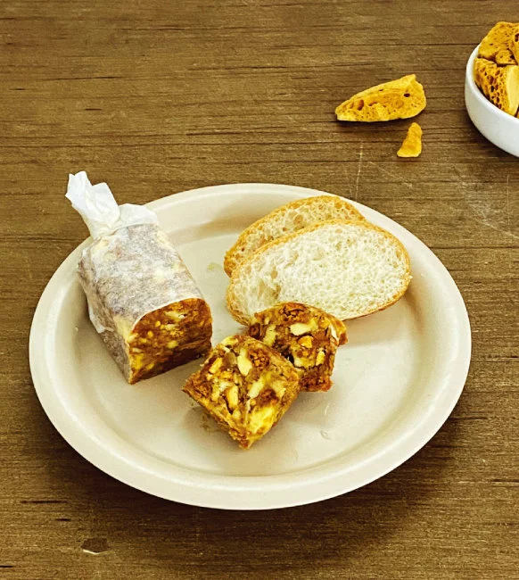 오늘 소개할 메뉴는 ‘달고나 버터’다. 만드는 방법도 쉽고 재미있다. 국자에 설탕을 넣고 녹이다 소다를 콕 찍어 재빨리 휘저어본 경험이 있다면 누구나 만들 수 있다. 경험이 없다면 뉴트로 감성을 느끼며 한번 만들어보라. 달고나를 잘게 부숴 버터와 섞은 후 냉장고에서 차갑게 식히면 완성이다.