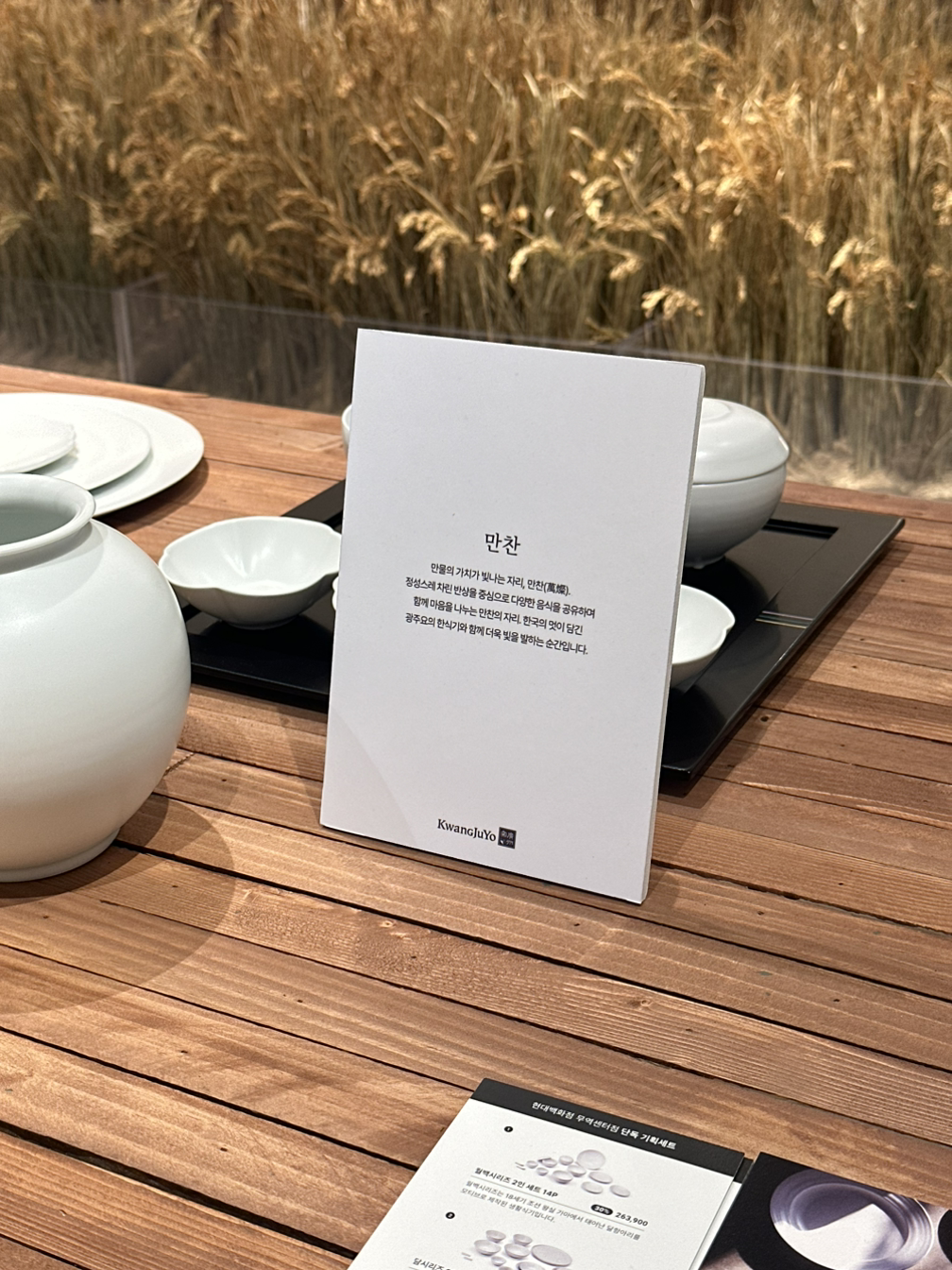 한국의 전통을 현대적으로 재해석한 그릇 브랜드로 , 이번 팝업에서 다양한 작품과 제품을 만날 수 있었습니다.팝업 전시장에서 가장 인상깊었던 것은 바로 '월백시리즈'였습니다. 이 시리즈는 달 항아리를 모티프로 한국의 아름다운 곡선을 그대로 담아내어, 식탁을 모던하고 섬세하게 연출할 수 있는 제품입니다.