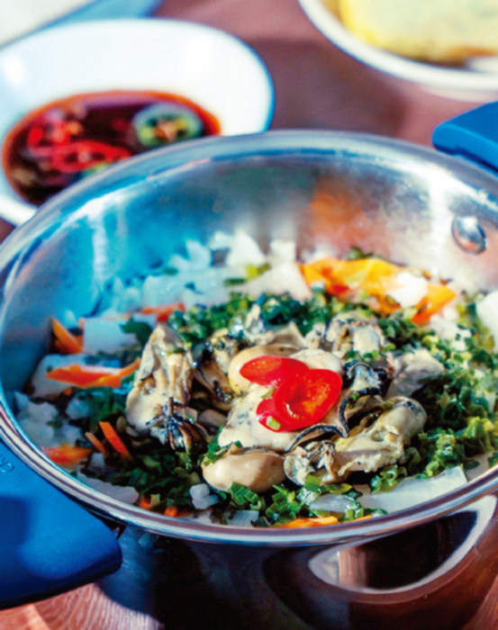 굴솥밥을 좀 더 색다르게 즐기고 싶다면 감태에 싸서 먹어보자. 바다 향이 물씬 풍기는 감태와 따끈한 밥이 어우러져 짭조름한 바다 풍미가 느껴진다. 간장, 참기름, 다진 파, 고춧가루를 섞어 만든 양념장에 비벼 먹어도 별미다.
