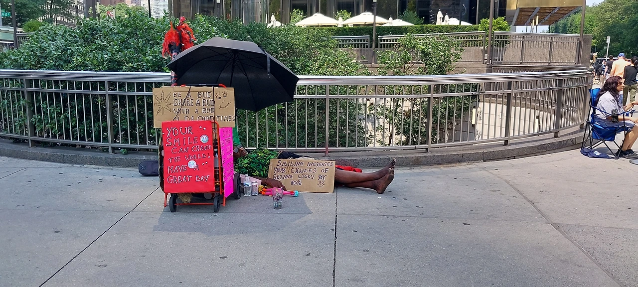 마침 이번 주말은 아버지의 날. 딸들에게서 선물 받은 셔츠를 입고 가방을 맨채 링컨센터 근처도 거닐고 내친김에 센트럴파크까지 걸었다. 거리의 핫도그를 즐겨 먹었던 우리는 이번에도 그냥 지나칠 수가 없다. 복잡한 주말의 거리에서 홈리스 피플이 잠자고 있는 모습이 눈에 들어온다.