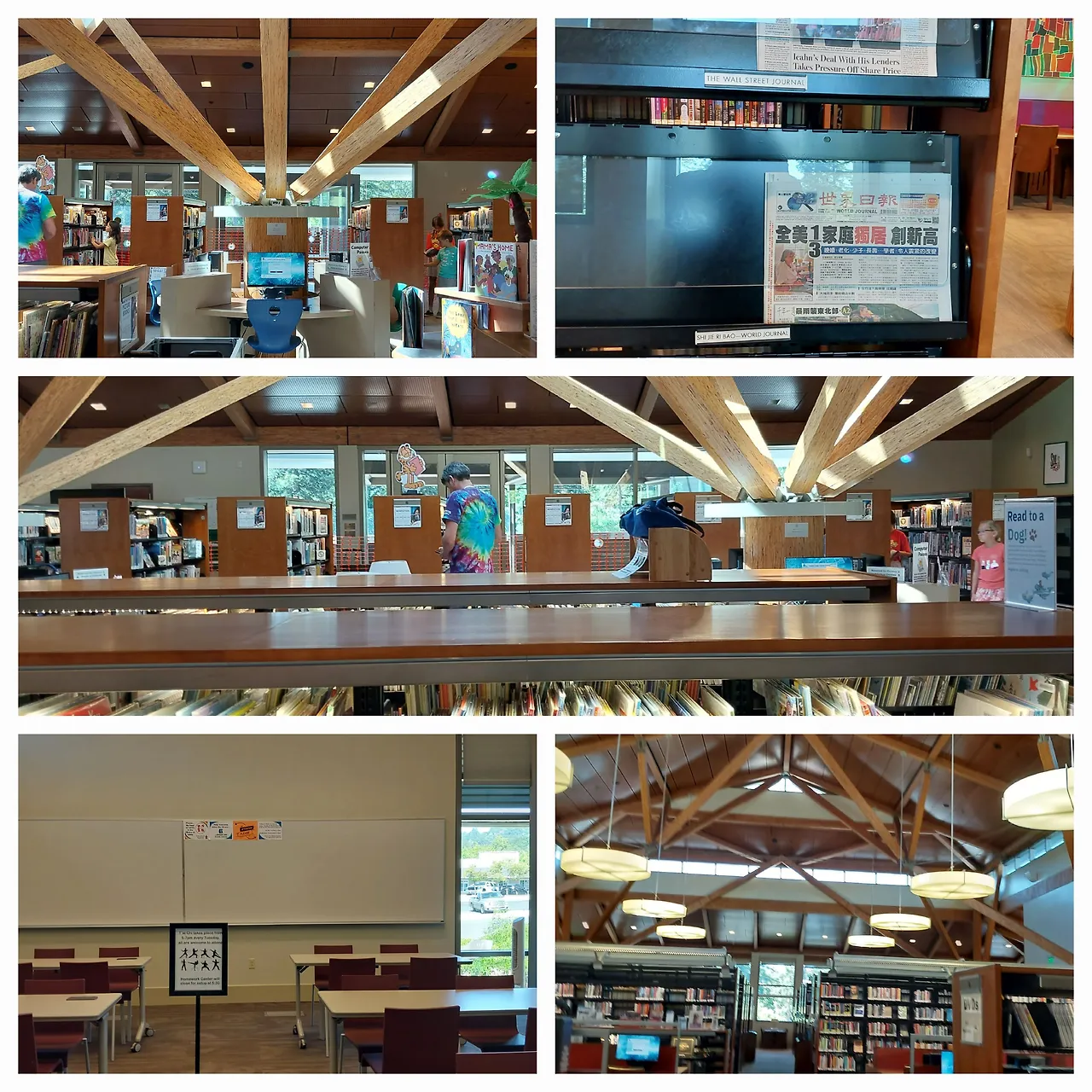 ~ 오늘 시간을 보냈던 동네 도서관 ~ 쾌적하고 넓은 공간. 쉼과 일을 함께 할 수 있어 좋았던 곳 예전의 영화도 빌릴 수 있 모여서 요가도 하고 중국 신문과 영자 신문은 있어도 한글 신문 (대한민국의 신문)은 없어 조금 아쉬