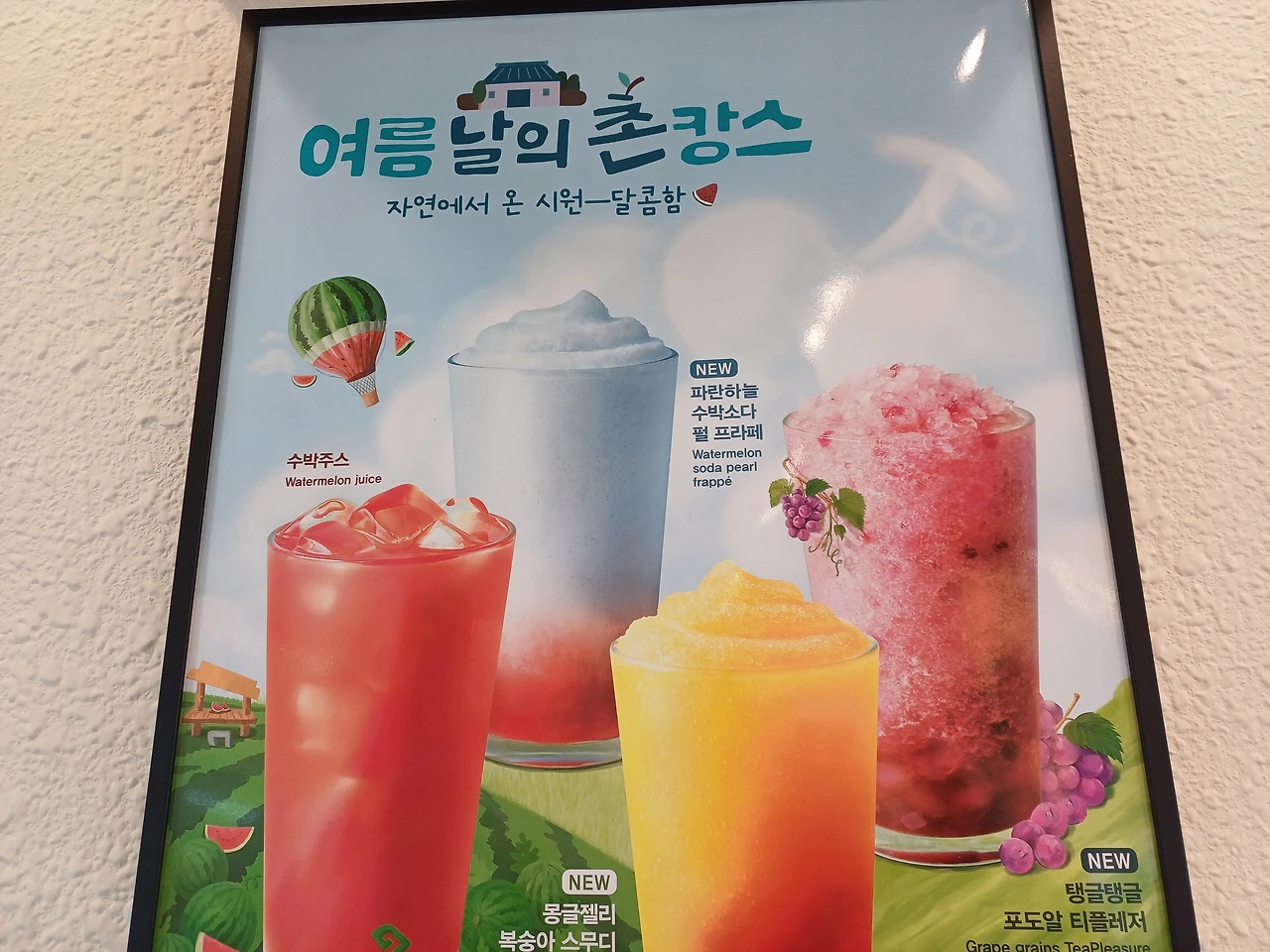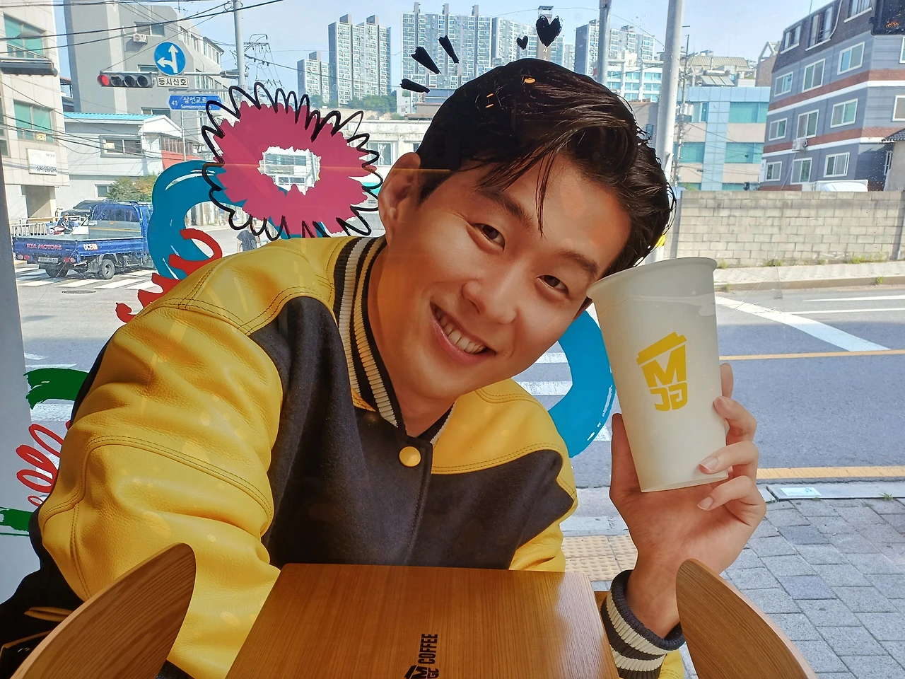 우리 동네 코너에 위치한. 손흥민 선수의 사진이ㅡ 걸린 커피집에서 어머니를 모시고
