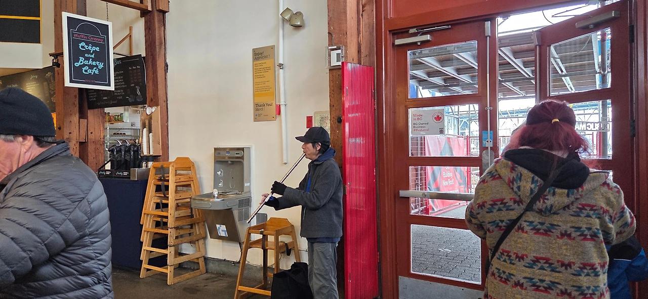 공장지대를 변형하여 만든 관광객이 꼭 들린다는 그랜빌 아일런드의 *클램차우더*는 추위를 타는 내겐 영혼의 스프였다. 누구나 즐기는 그 시간 마켓플레이스의 구석진 곳에서 *대니 보이*를 연주하는 길거리 악사에게 나는* 오니언스프*라도 대접하고 싶어 곁에 놓인 바구니를 찾아 두리번 거렸다.