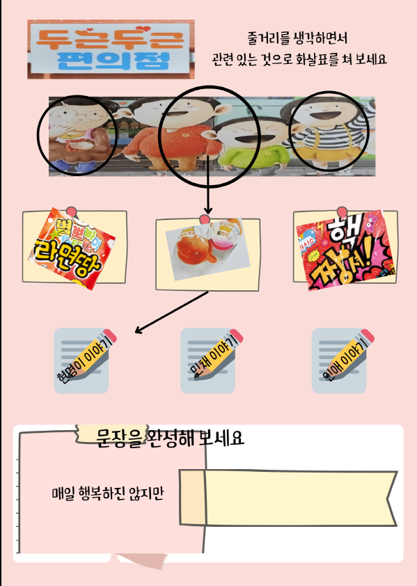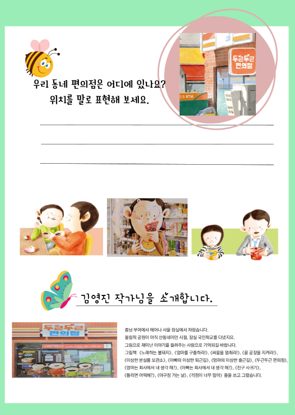 책을 다 읽었다면 두근두근 편의점 활동지를 살펴볼까요~~~