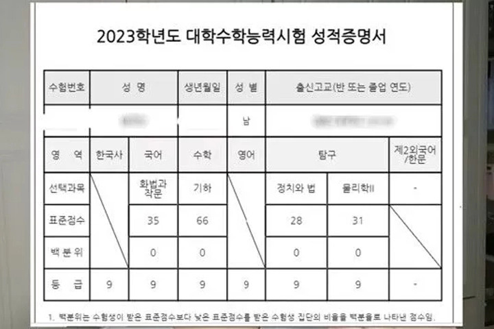 얼마 전 국내 온라인 커뮤니티에는 경인교대 정시 1차에 합격한 한 학생이 자신의 수능 성적표를 인증해 화제가 되었다.