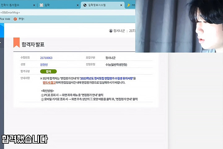 알고 보니 경인교대 입시에서 1차 합격자는 1.5배수로 뽑는 것이었는데, 경쟁률이 1.37 대 1밖에 되지 않아 지원자 전원이 1차에 붙은 것이었다.