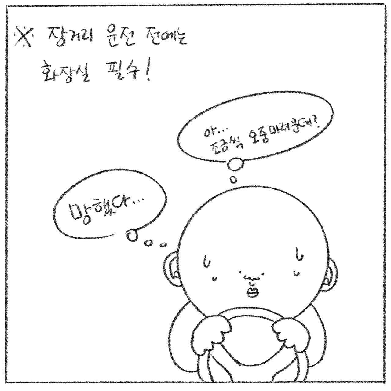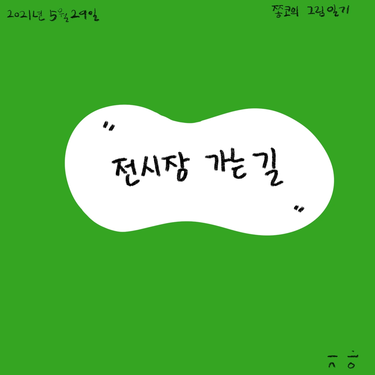 운전 중에 방광이 터질 듯했는데 전시장 도착하니 괜찮아졌다.